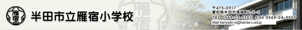 連絡先半田市立雁宿小学校〒475-0917愛知県半田市清城町1-5-2TEL:0569-23-0101FAX:0569:24-9503Mail:kariyado-e@handa-c.ed.jp